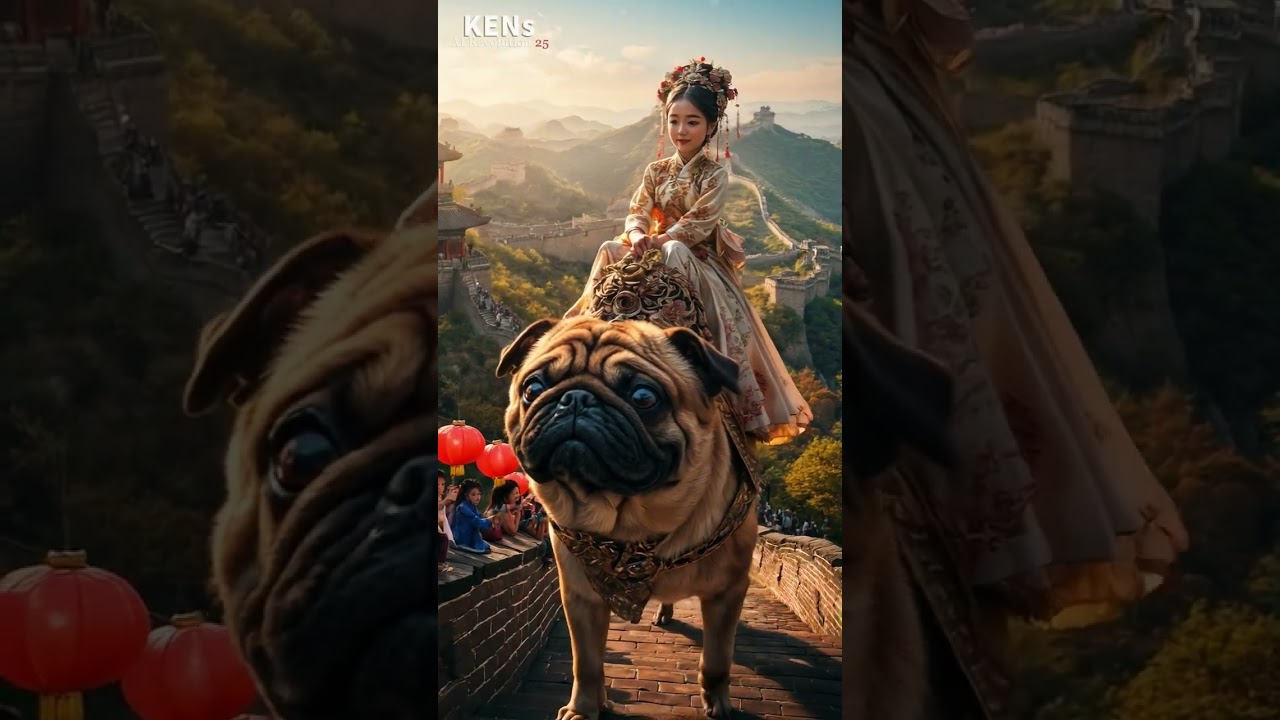 Cute Chinese girl riding a pug #fashion#baby#AI#runway#fyp #viral#赤ちゃん#かわいい#베이비패션쇼#shorts