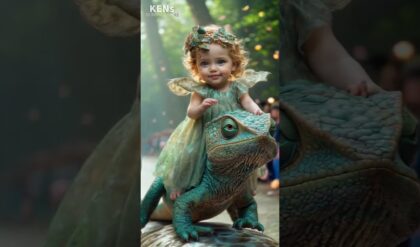 Cute baby riding a chameleon #fashion#baby#AI#runway#fyp #viral#赤ちゃん#かわいい#可愛い#베이비패션쇼#shorts