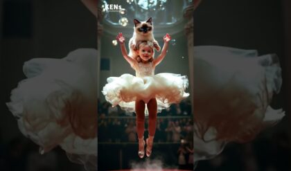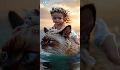 Adorable girl swimming on a Siamese cat #cute#fashion#baby#AI#runway#赤ちゃん#かわいい#베이비패션쇼#shorts