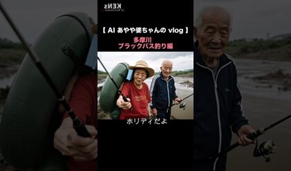 あやや 婆ちゃん 【 AI vlog 】台風後の 多摩川 ブラックバス 釣り編 / Tama River Black Bass Fishing #桃太郎 #Kimono #おばあちゃん