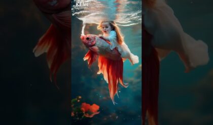 A cute baby riding on a betta tropical fish #fashion#baby#AI#runway#fyp #viral#赤ちゃん#かわいい#可愛い#shorts