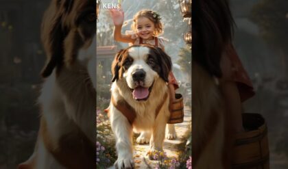 Adorable girl riding a Saint Bernard #cute#fashion#baby#AI#runway#赤ちゃん#かわいい#베이비패션쇼#shorts